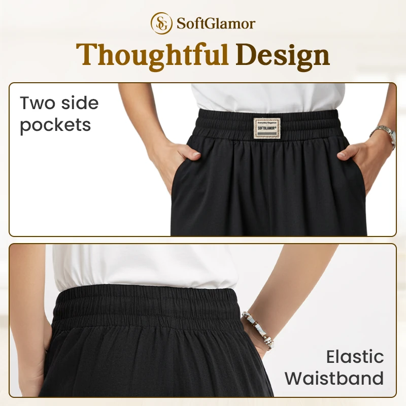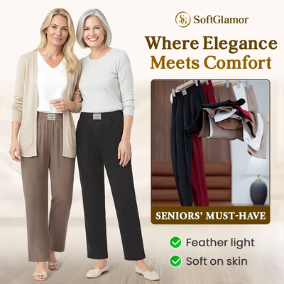 Reimagine everyday elegance with SoftGlamor, gracefully tailored pants that flatter the mature figure with soft comfort and timeless sophistication.